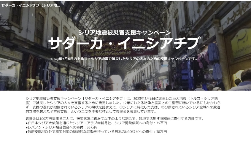 これまでサダーカ・イニシアチブの広報活動はFacebookInstagram、そしてシリア和平ネットワークのHPを通じて行ってきましたが、ようやっと独自のHP(https://sites.google.com/view/sadaqainitiative70)を開設することができましたので、ここにお知らせします。