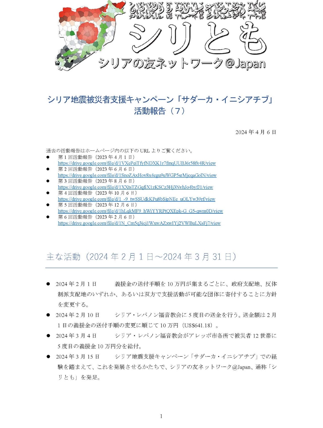 シリアの友ネットワーク@Japan(シリとも)の取り組みの一つであるシリア地震被災者支援キャンペーン「サダーカ・キャンペーン」ではこの間、①シリアに特化した支援、②分断されているシリア全域への政治的立場を超えた全方位支援、という二つを主要な柱として、シリアで被災した人々への支援を行ってきました。