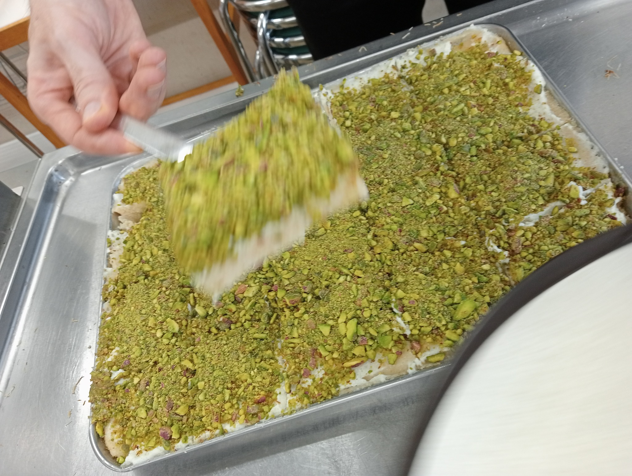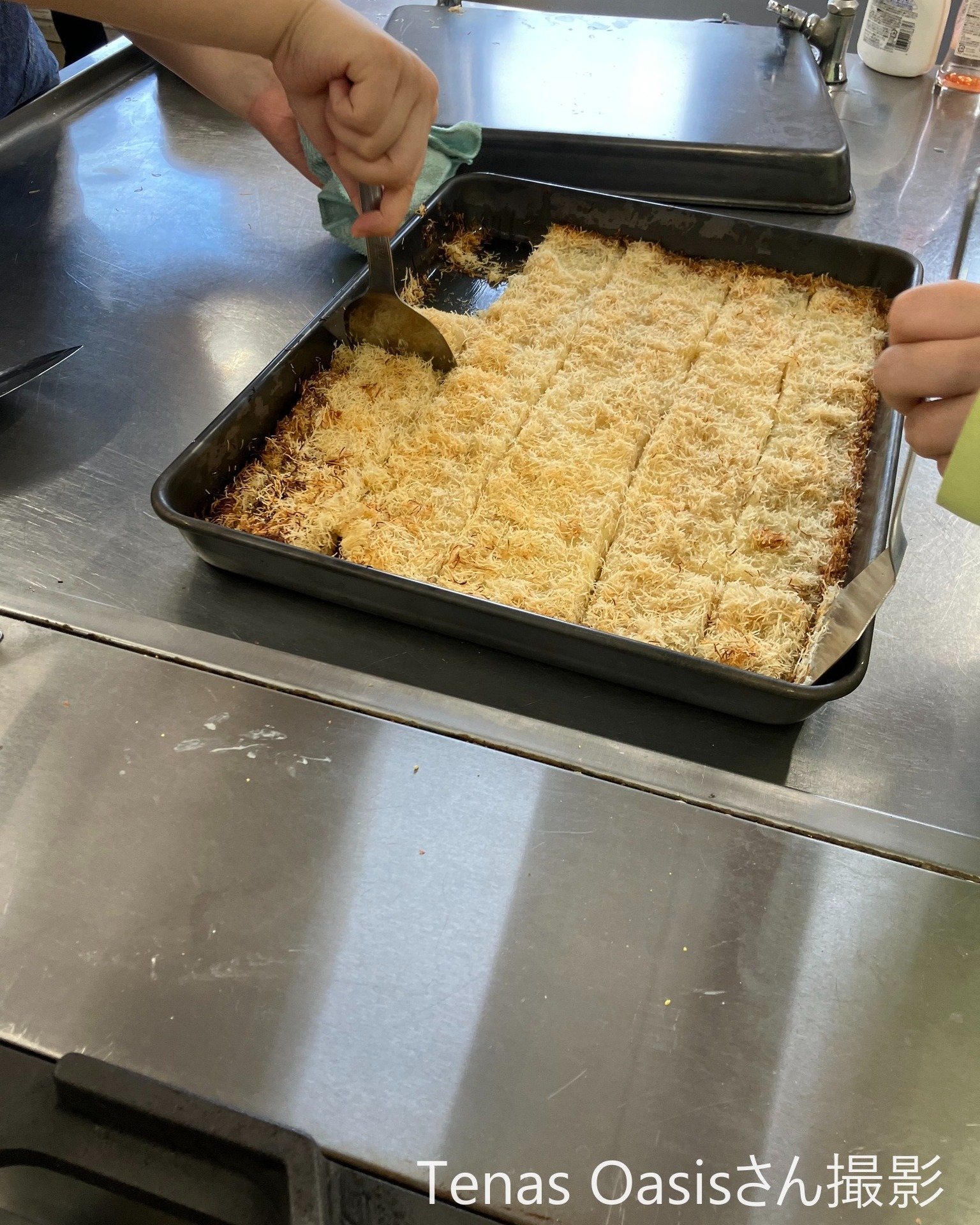 「胃袋で好きになるシリア!」フェスを開催 投稿日時: 2024年5月24日 投稿者: friendsofsyria シリとも発足記念企画として「胃袋で好きになるシリア!」フェスを開催し、参加者のみなさん(19人)とシリアのお菓子、ハラーワト・ジュブン、クナーファ、マドルーカを調理し、試食しました。