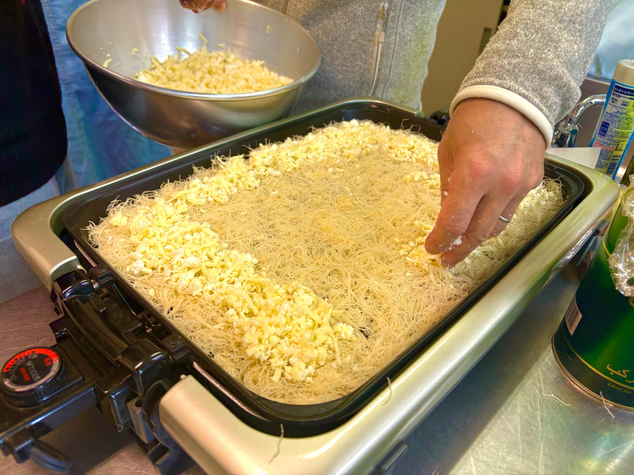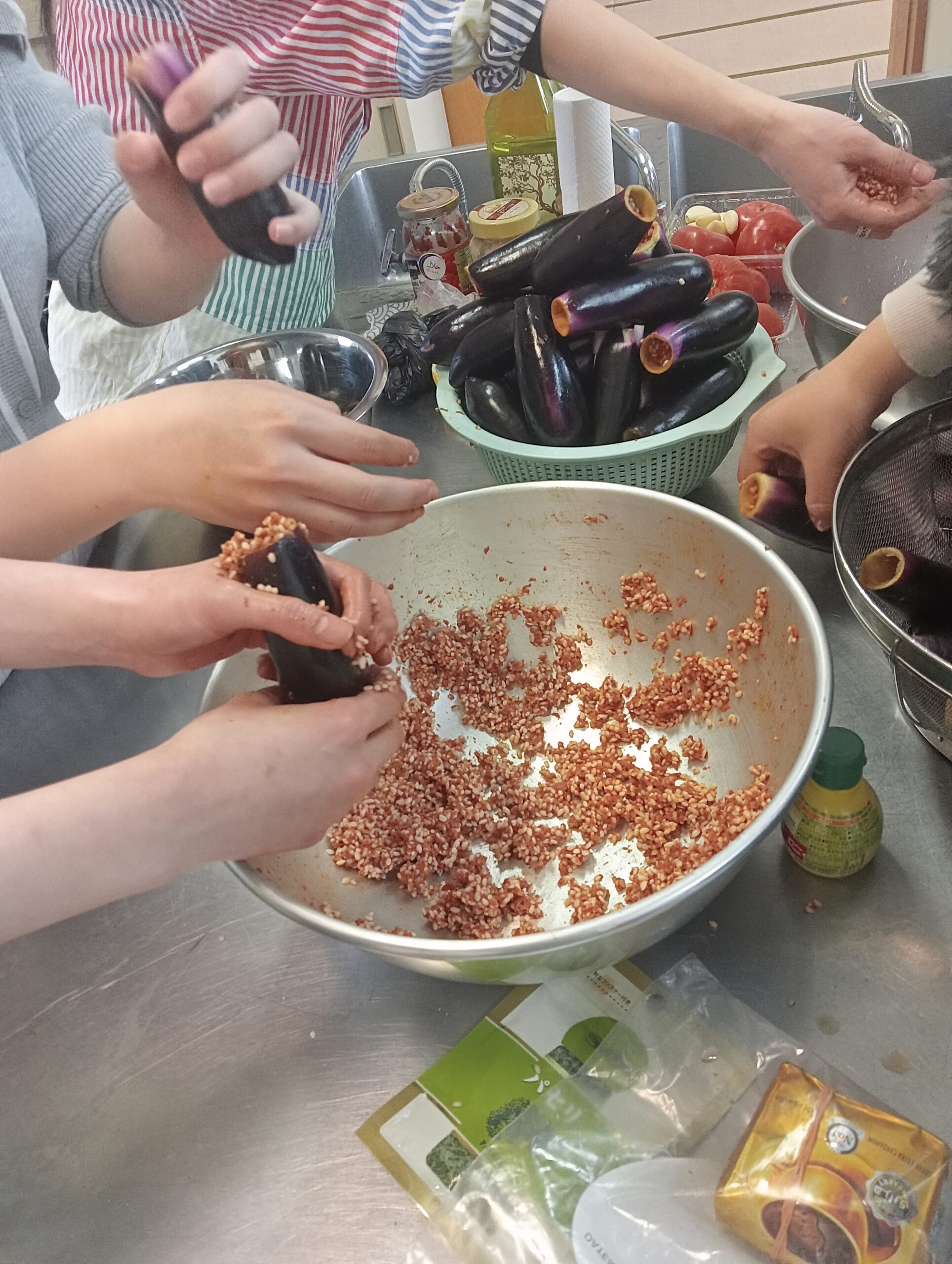 3月30日、吉祥寺の本宿コミセン(武蔵野市)で東京外国語大学公認サークルのシリア研究会とコラボで「胃袋で好きになるシリア!3 マハシほじほじ&まきまきの会」を開催し、参加者17人で、ナスのマハシー(ほじほじ)とキャベツのマルフーフ(まきまき)、ムタッバル、クナーファを調理して、食べました。