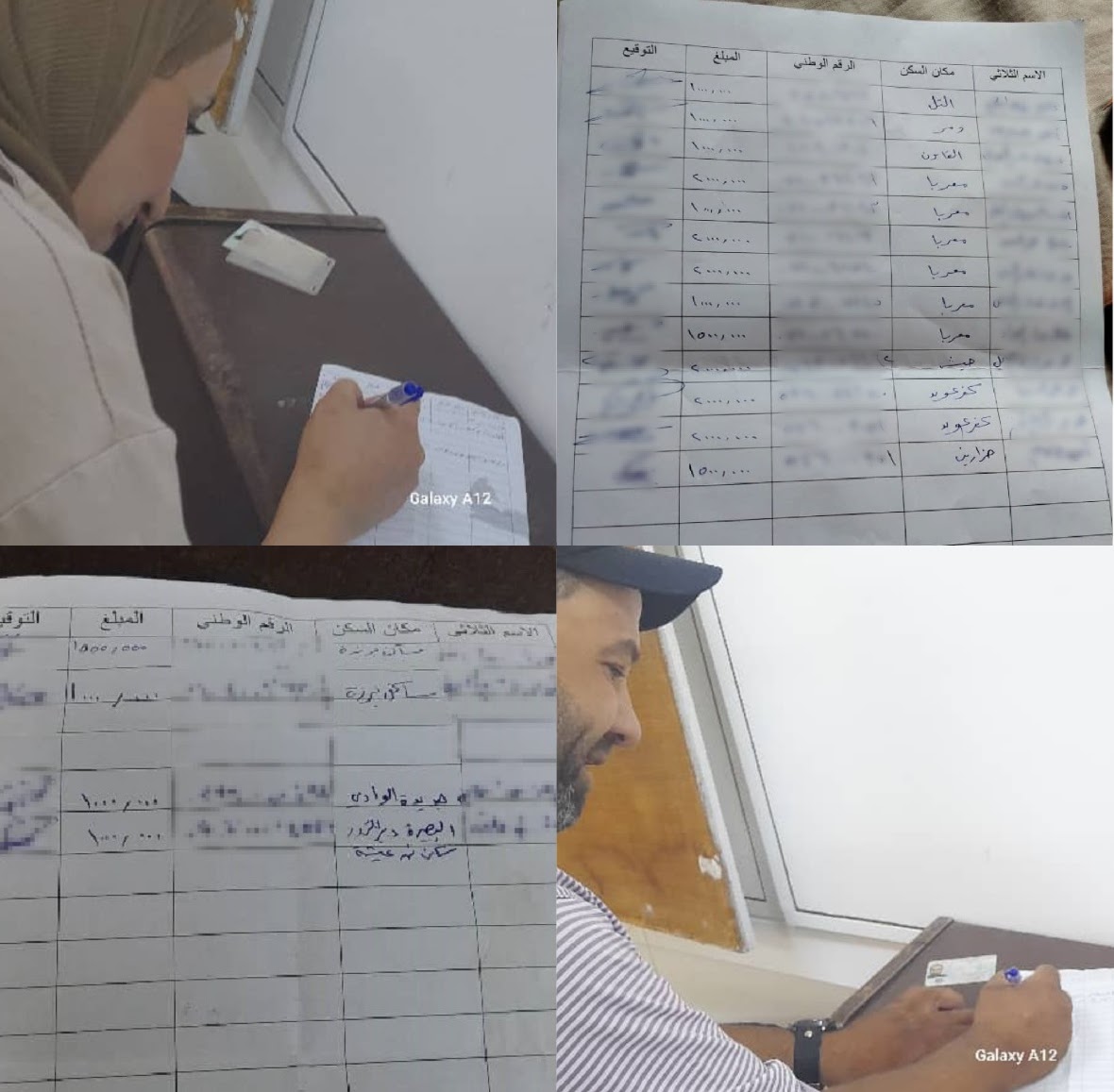 このうち2,491.44米ドル(22,000,000シリア・ポンド)は、6月19日から7月1日にかけて、イドリブ県での長年にわたる避難生活を経て、最近になって元の居住地に帰還した17世帯に対して給付しました。帰還先となった元居住地は、ダマスカス郊外県タッル市、マアルバー村、ジュダイダト・ワーディー町、イドリブ県ヒーシュ村、カフル・ウワイド村、ハザーリーン村、ダマスカス県ドゥンマル地区、カーブーン地区、マサーキン・バルザ地区、ナフル・イーシャ地区。対象世帯は、政府関係当局の協力のもとに選定され、それぞれに対して1世帯あたり1,000,000シリア・ポンドから2,000,000シリア・ポンドが支給されました。また200米ドルは、シリア国内における送金受取手数料などの経費に充てられました。