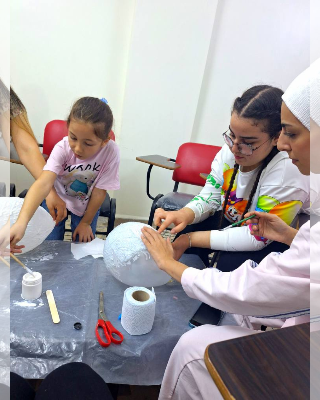 シリアの「シリとも」(SFJW)が子供のための手芸教室(第2回)を開催 投稿日時: 2025年10月16日 投稿者: friendsofsyria シリアの「シリとも」(SFJW)は10月16日、首都ダマスカス郊外のジャルマーナにおいて、子供のための無料の手芸教室(第2回)を開催しました。 今回の教室では、ティッシュペーパーを使ってランプの制作に取り組みました。風船にのりを浸したティッシュペーパーを貼り付けてランプシェードを作り、木材で台座も製作しました。のりが乾くまでに1日ほどかかるため、次回、ランプシェードと台座を組み合わせ、内部にランプを設置して完成させる予定です。