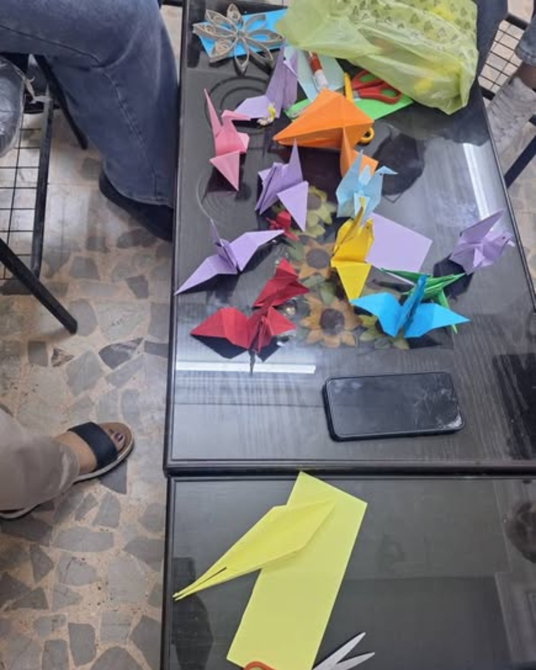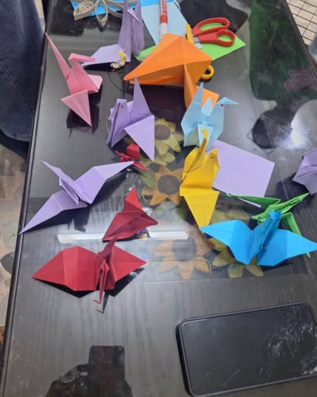 最終回となる今回の教室では、日本の折り紙に挑戦し、折り鶴などを制作しました。